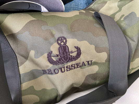 The Weekender Bag with embroidered EOD Badge and Name | EOD Bomb Tech Duffle Bag | Perfect for a VIP | Customizable