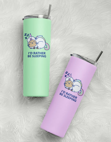 I'd Rather Be Sleeping Skinny Tumbler | Colorful Kitty Cat Stainless Steel Drinkware