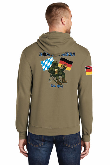 Back print: “Bombs & Beers” graphic with Bavarian & German flags
