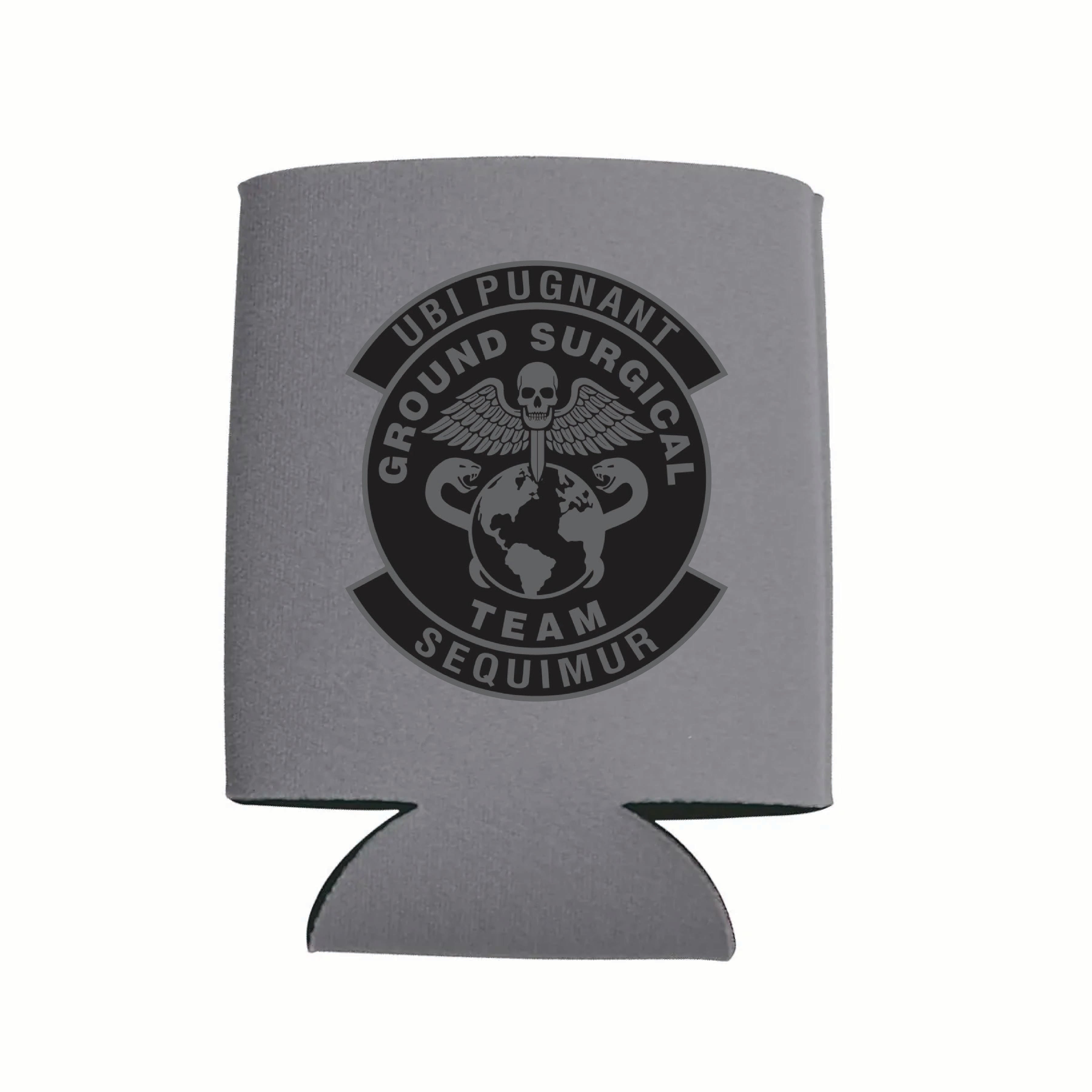 Keep your drink cool while still telling everyone in the room that you are a proud member of the Ground Surgical Team with this can cooler. Featuring a the Ground Surgical Team Nellis AFB Emblem on the front.