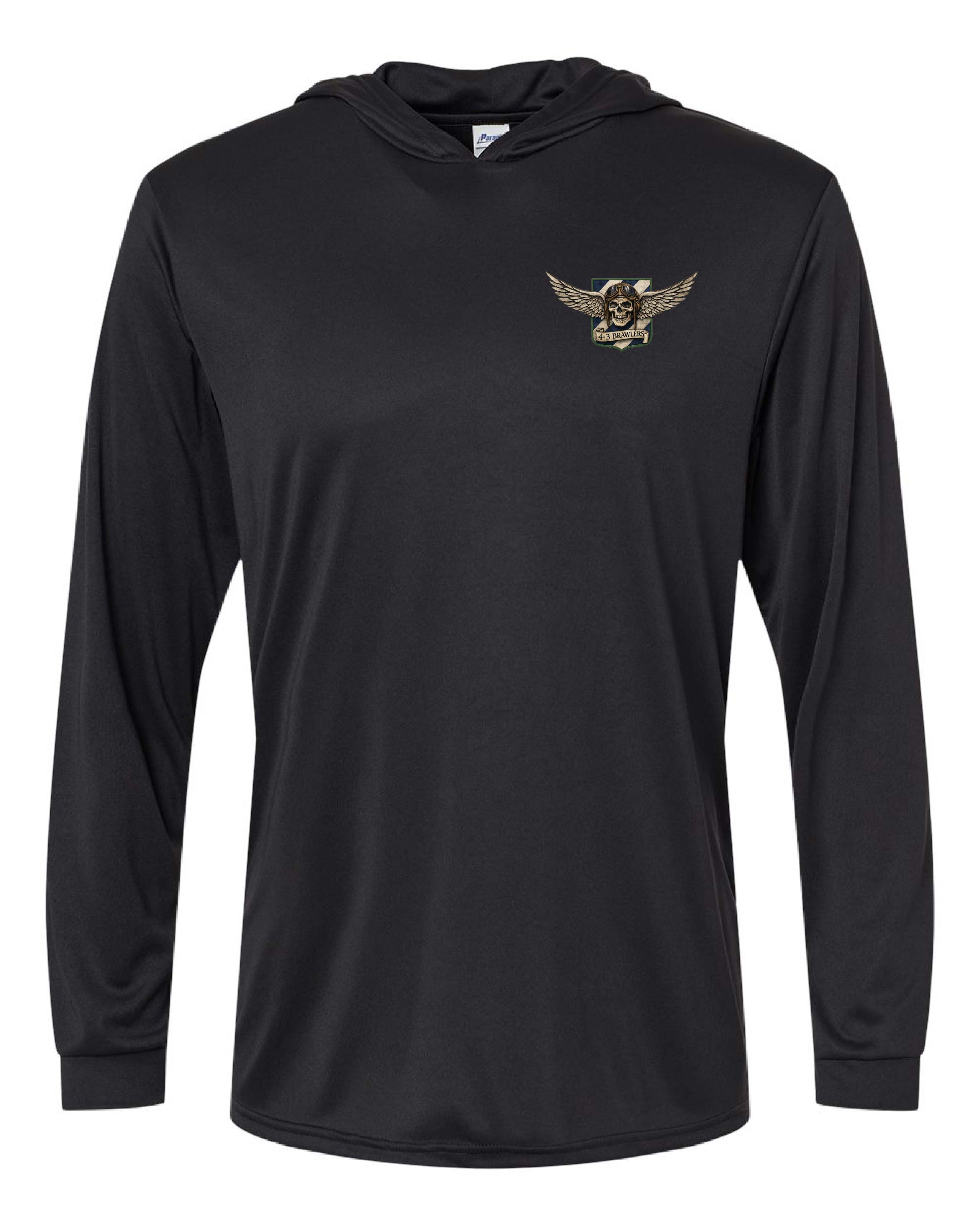 Long days on the line don’t stop for the weather. Whether it’s sun, wind, or just another shift that runs longer than planned, this HHC, 4-3 AHB Brawlers Hooded Sun Shirt is built to keep you comfortable while representing the unit.