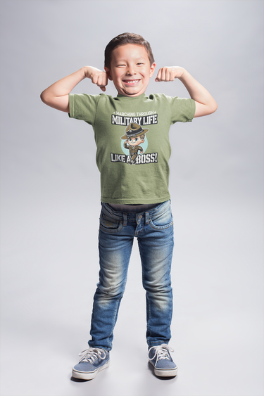 Marching Through Military Life Like a Boss! T-Shirt | Month of the Military Child |Toddler & Youth Drill Sergeant Tee