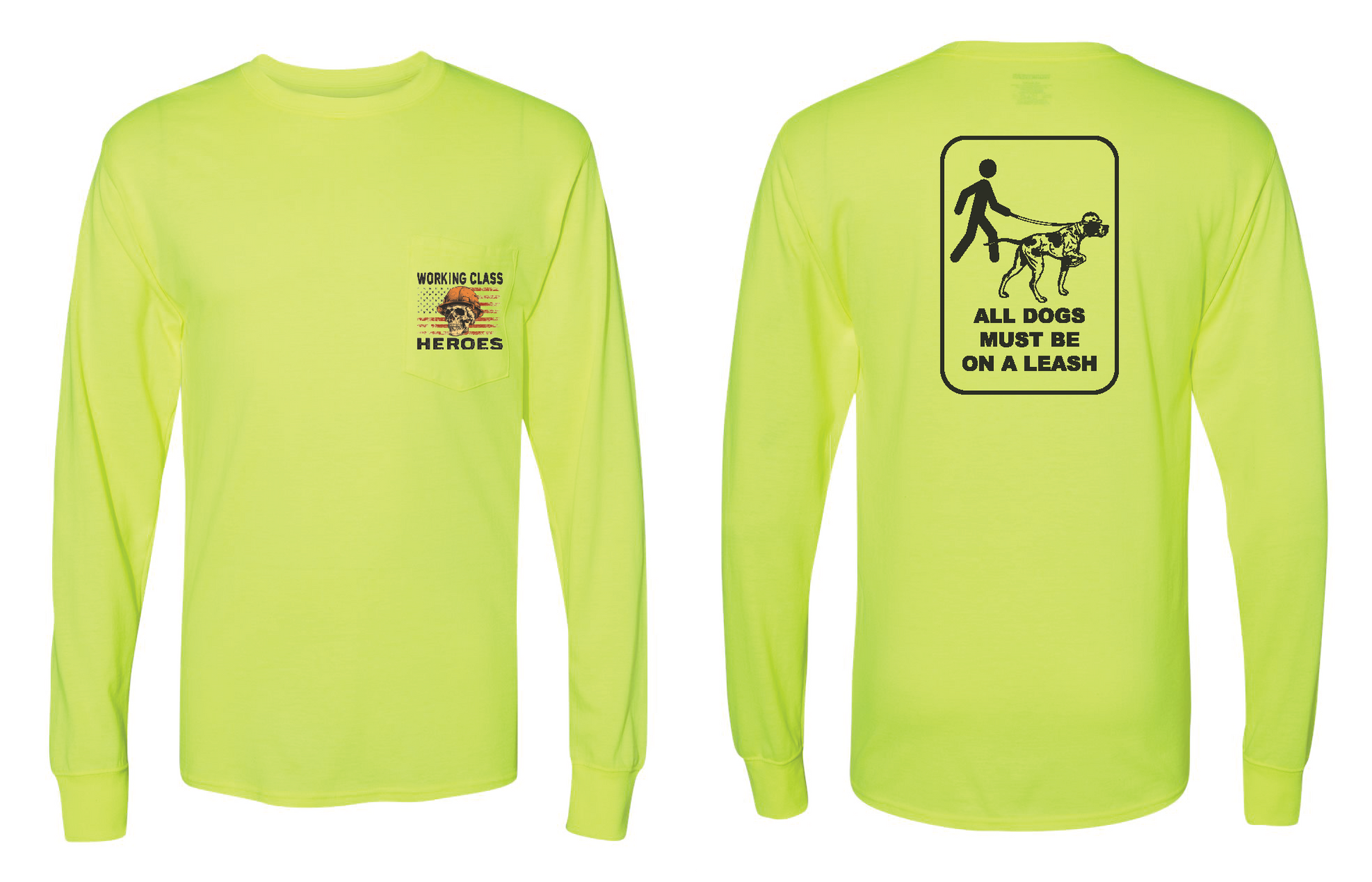 The perfect shirt for any craft worker, it comes in ANSI certified Safety Green or Orange. It features a front pocket to hold a notebook or phone, as well as a pencil/pen slot. Long sleeves to help protect you from the harmful rays of the sun and moisture wicking to keep you cool while you're bustin' your ass building this great nation.