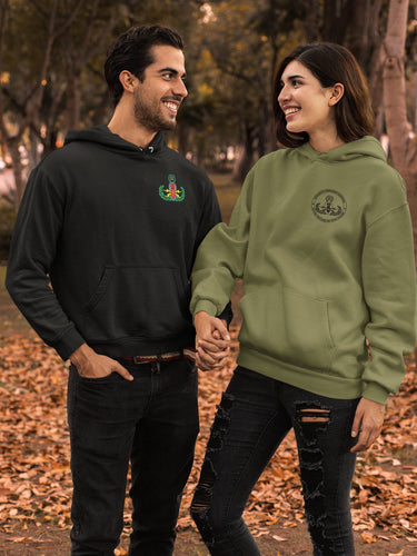 It takes a special person to be an EOD Tech, the men and women who decide to walk into danger instead of turn around like most people. This hoodie show features the words BOMB SQUAD on the back and and an EOD badge on the front left chest.