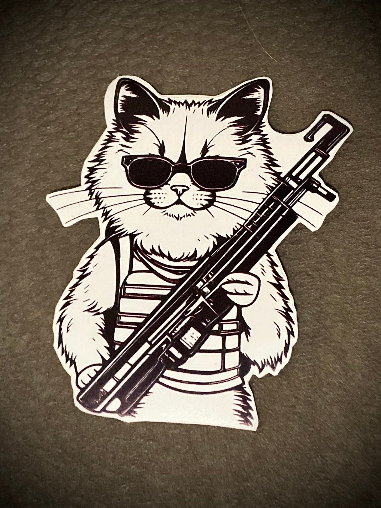 This is one cool cat....Tacticool Cat that is! This ragdoll cat is sporting shades and packing heat to let everyone know that he is not to be messed with. And if you have a job he will get it done!
