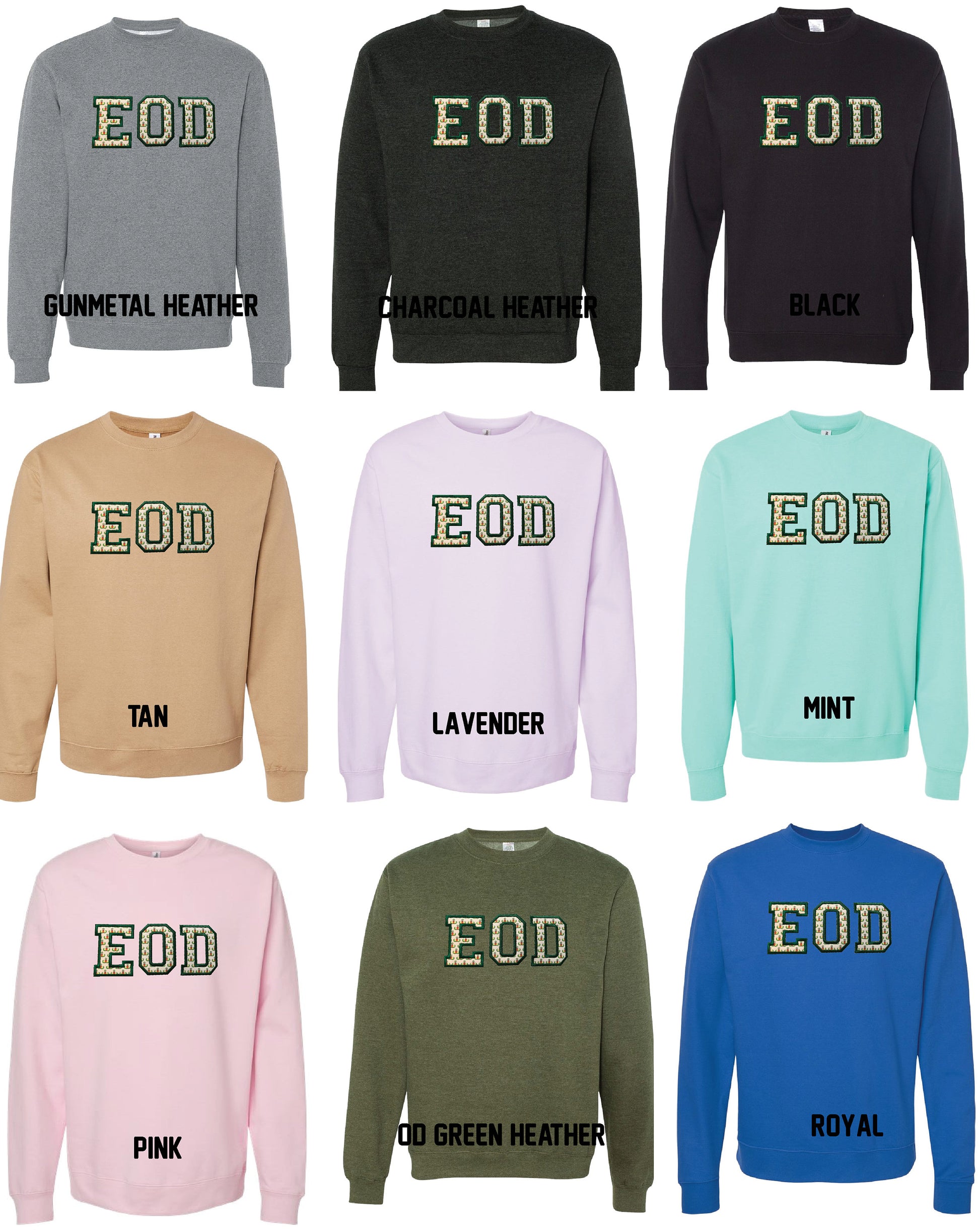 EOD Applique Crewneck Sweatshirt | Basic, Senior and Master Badge Options | Customize with Wife, Husband, Mom, Dad or anything else!