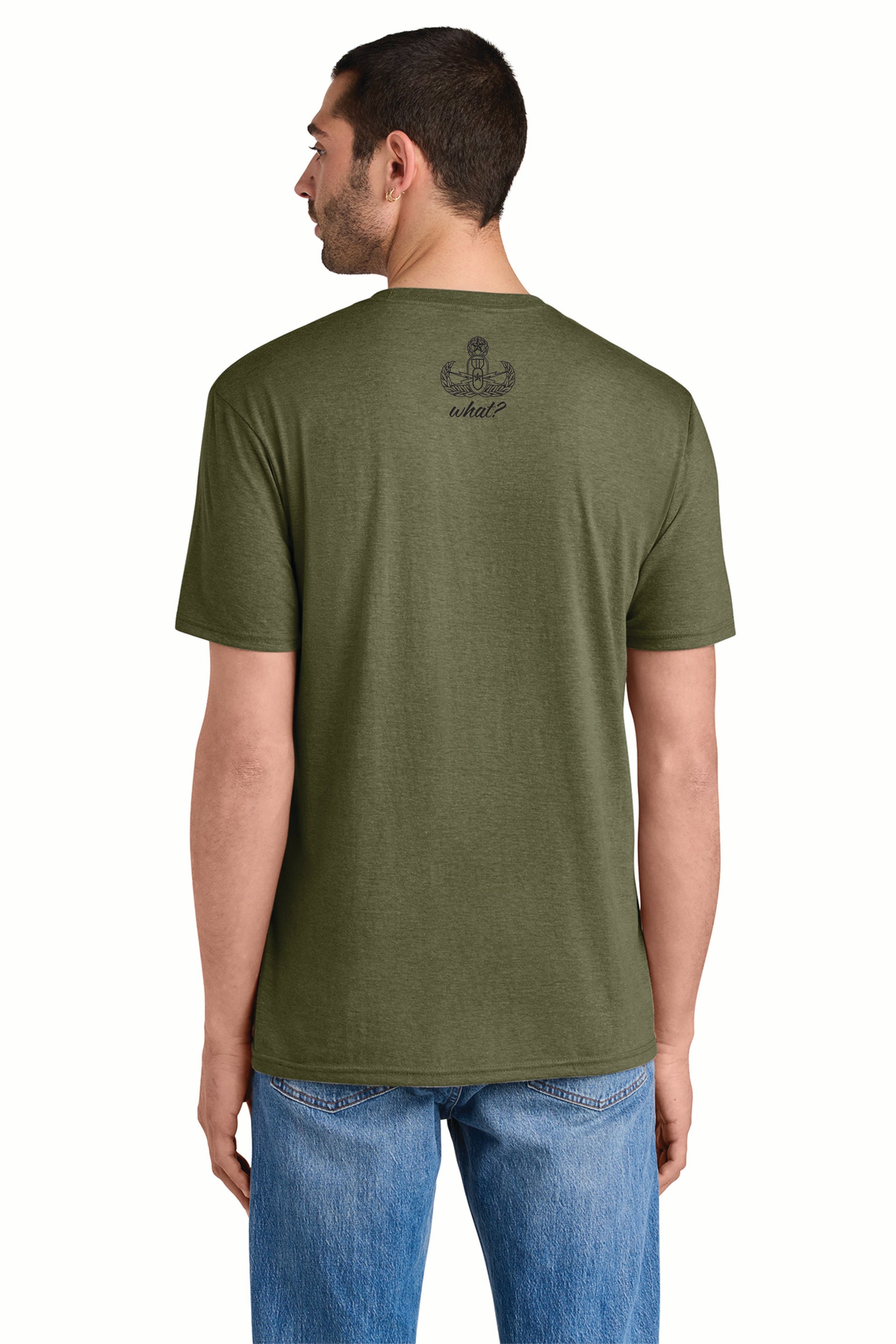 Say it louder without saying a word. This bold design features “EOD” spelled out in American Sign Language on the front, paired with a subtle Master EOD badge and the word “what?” printed on the upper back—because sometimes, that’s all that needs to be said.