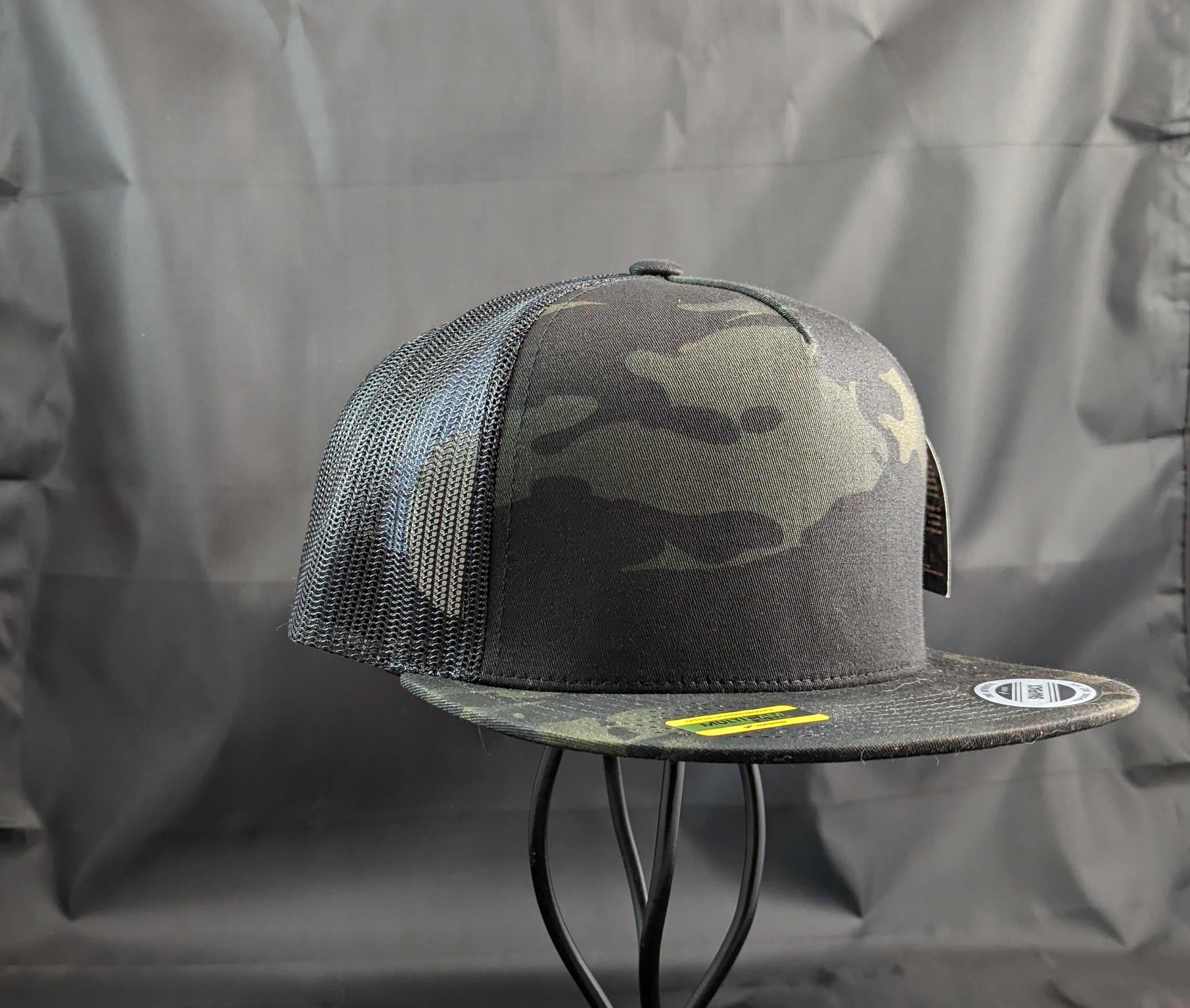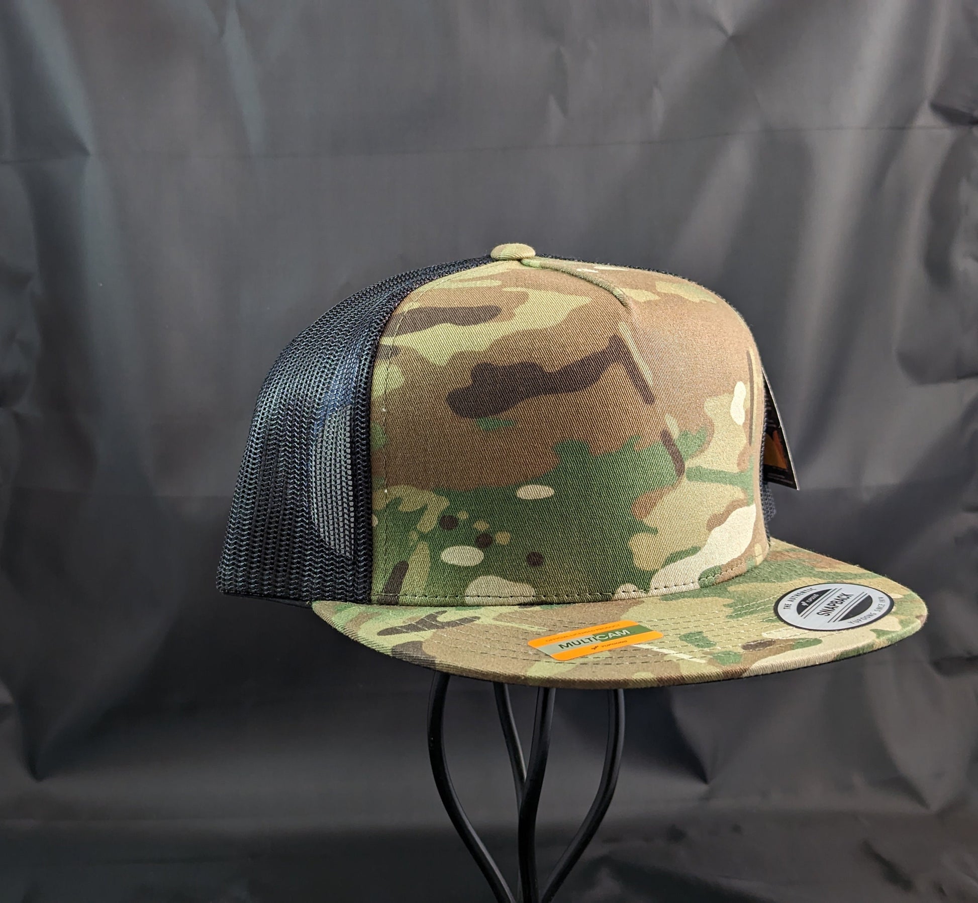 Leather EOD Badge Camouflage Multicam Flatbrim Hat | Real Leather Patch