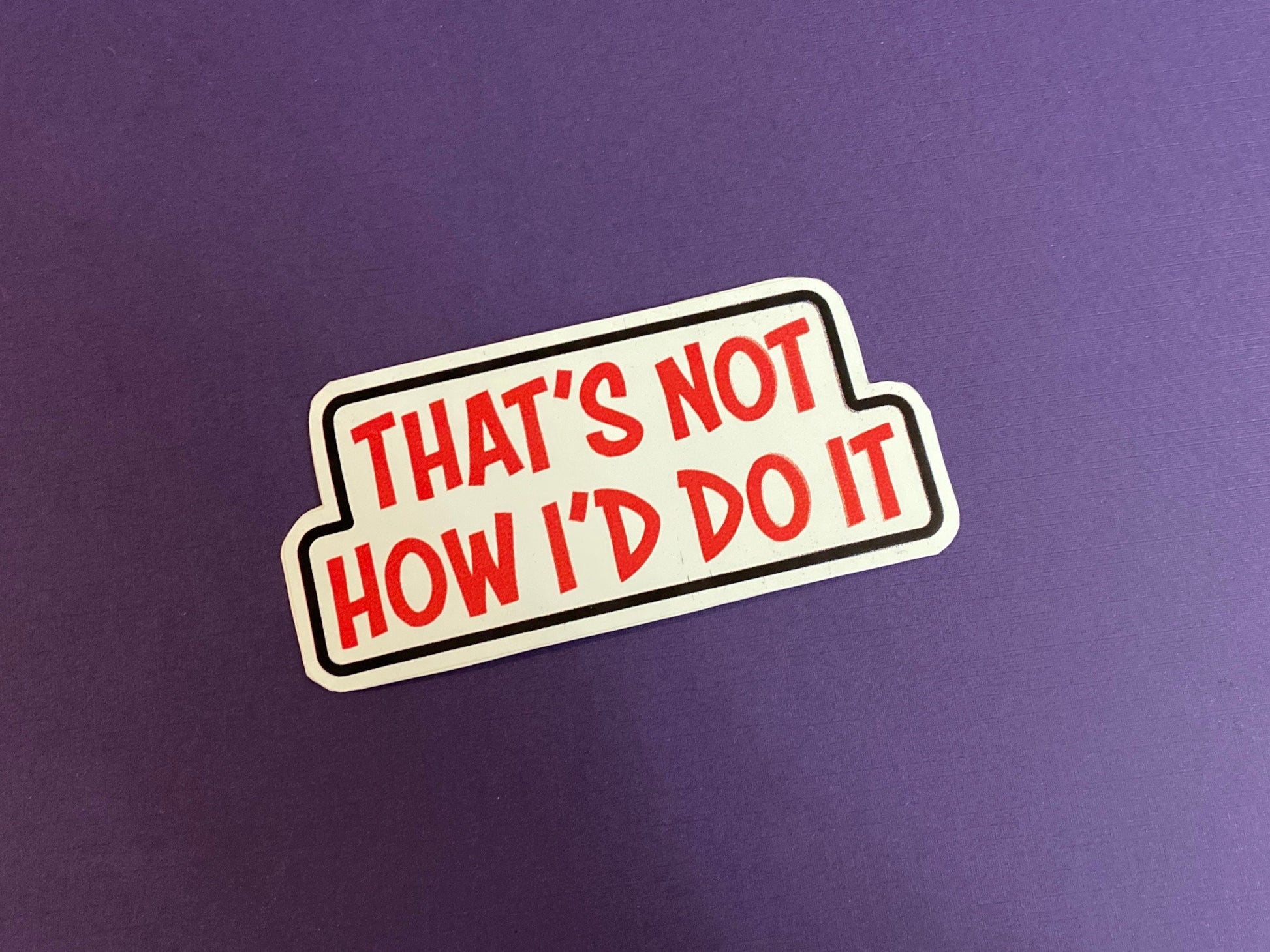 Are you or do you know the person who always thinks they know a little bit more than everyone else. And most assuredly know the best way to do something? Then this is the sticker to let that side of your personality shine! Let everyone know "That's Not How I'd Do It" because your way is obviously the best!